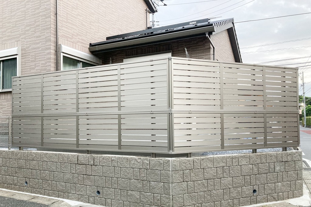 下にブロック塀などを配置し、上にアルミ製の柵などを組みあわせることも多いです。